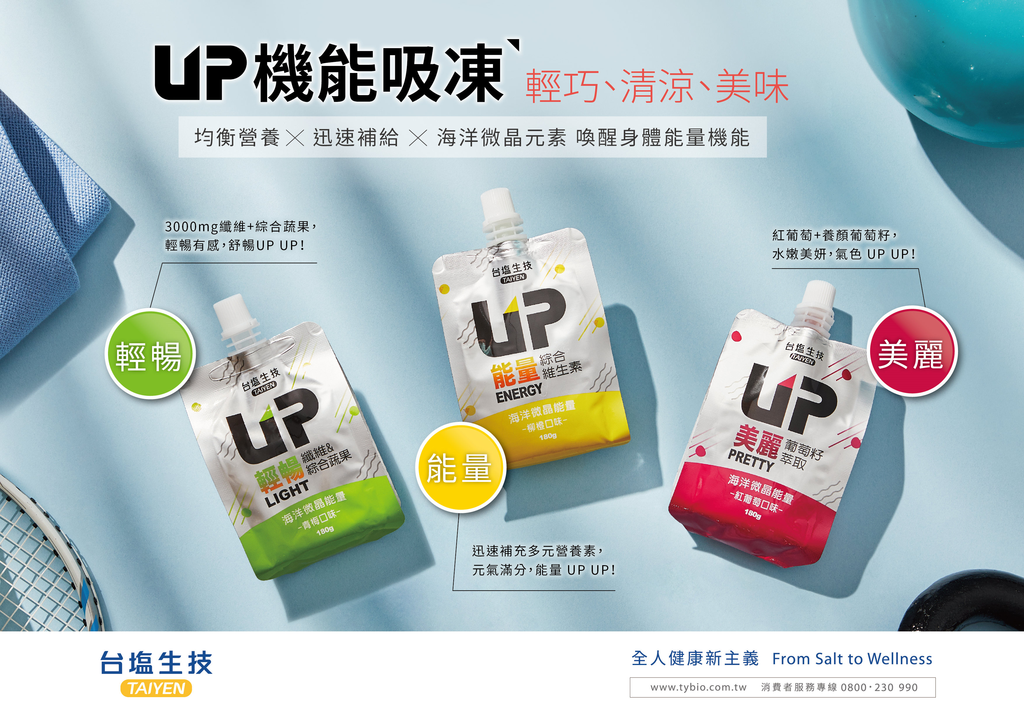 ● 標題關鍵字帶入:台塩生技、UP機能吸凍、您個人推薦的口味、隨身機能飲推薦