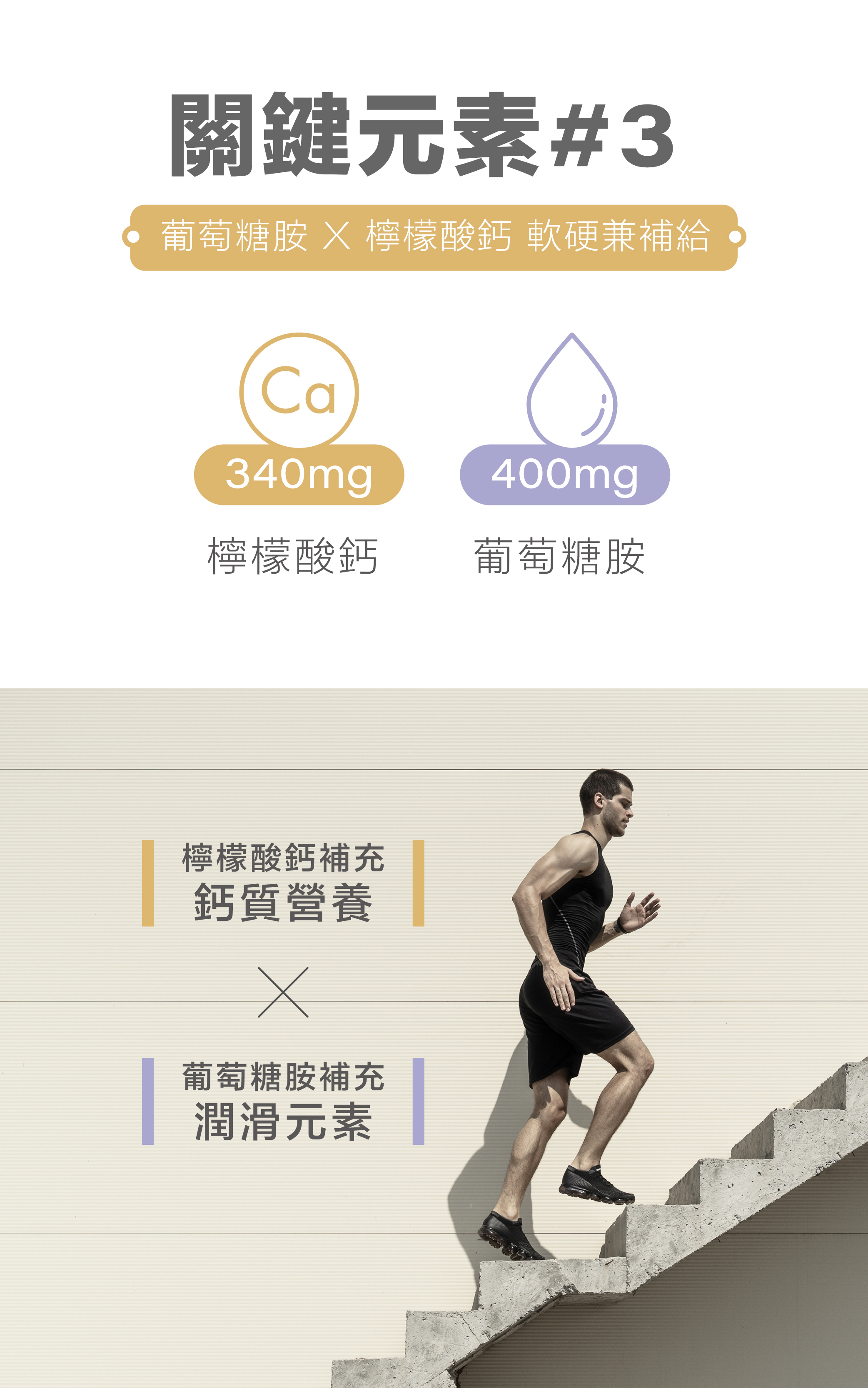 🟠鈣質、葡萄糖胺:都是所需的營養成分,除了效率補充UC-IIx蝦紅素之外,每份也能同步補充,營養補給!🚵♂️