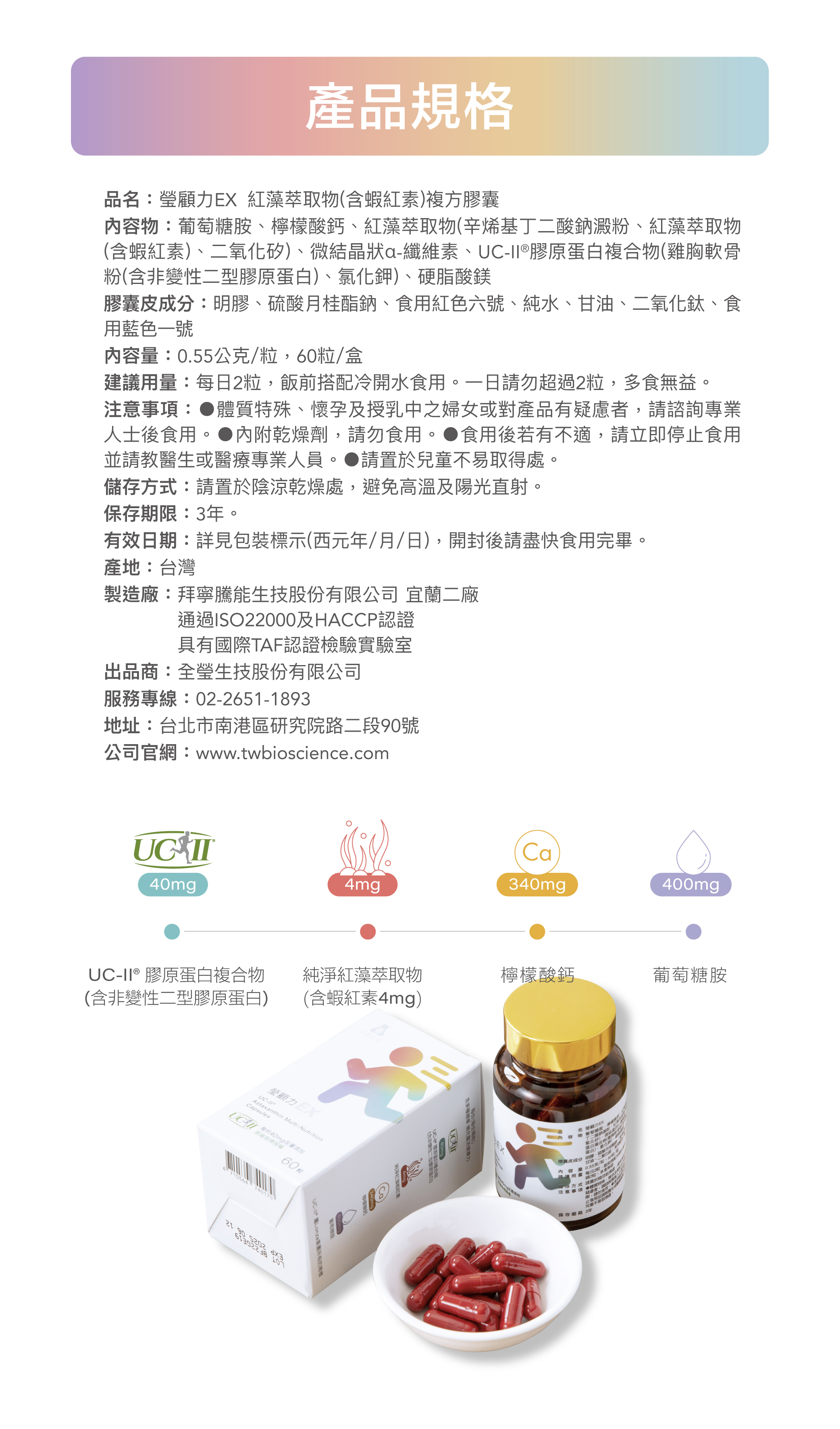 NAFU LIFE全瑩生技「瑩顧力EX」使用UC-II非變性膠原蛋白,