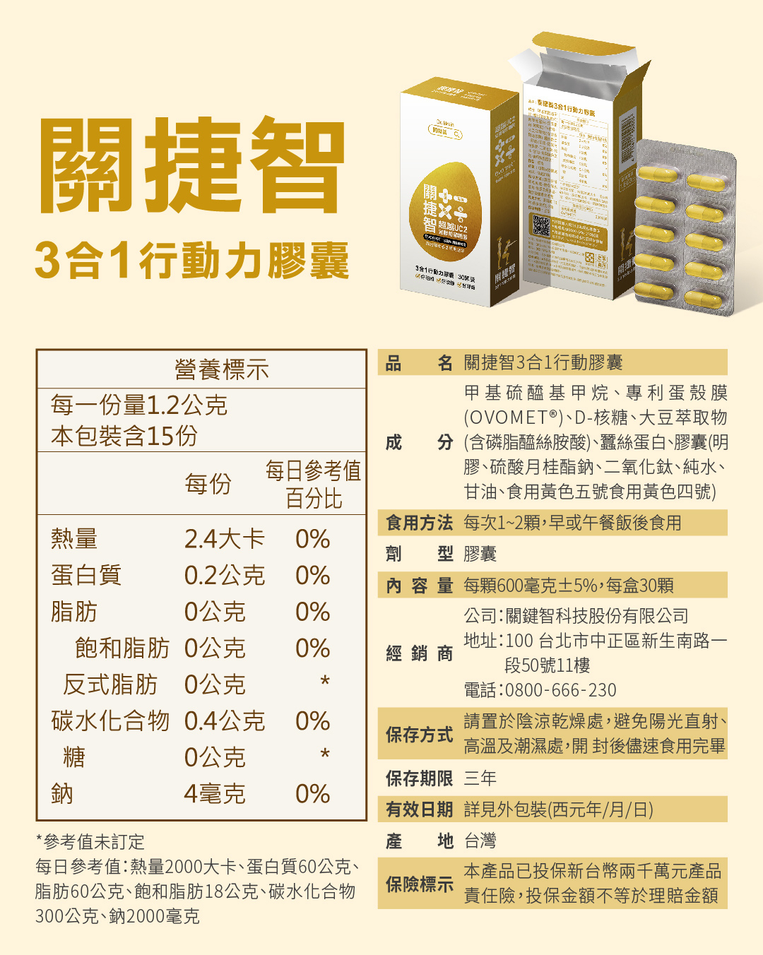 ● 試用產品:關捷智3合1行動力膠囊30入,價值$1599元