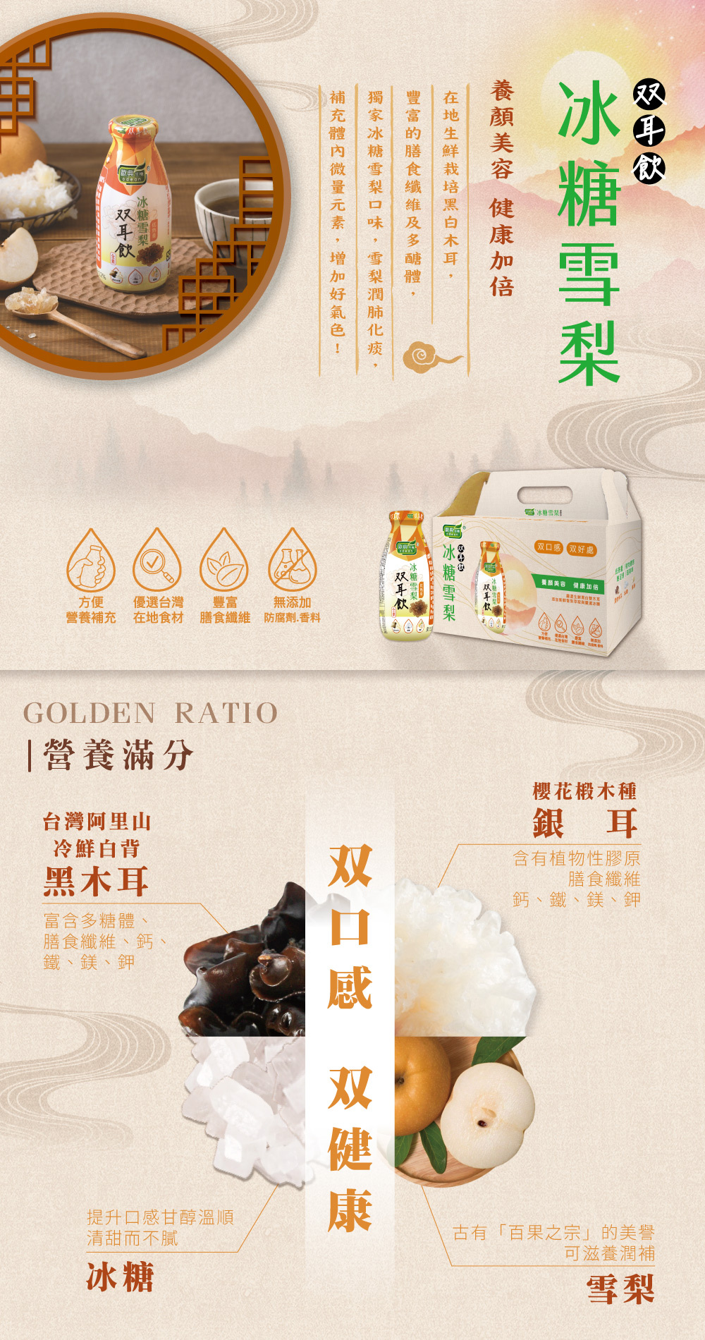 產品規格:黑糖仙草双耳飲290ml秋月獻禮(8瓶入/盒);冰糖雪梨双耳飲290ml秋月獻禮(8瓶入/盒)