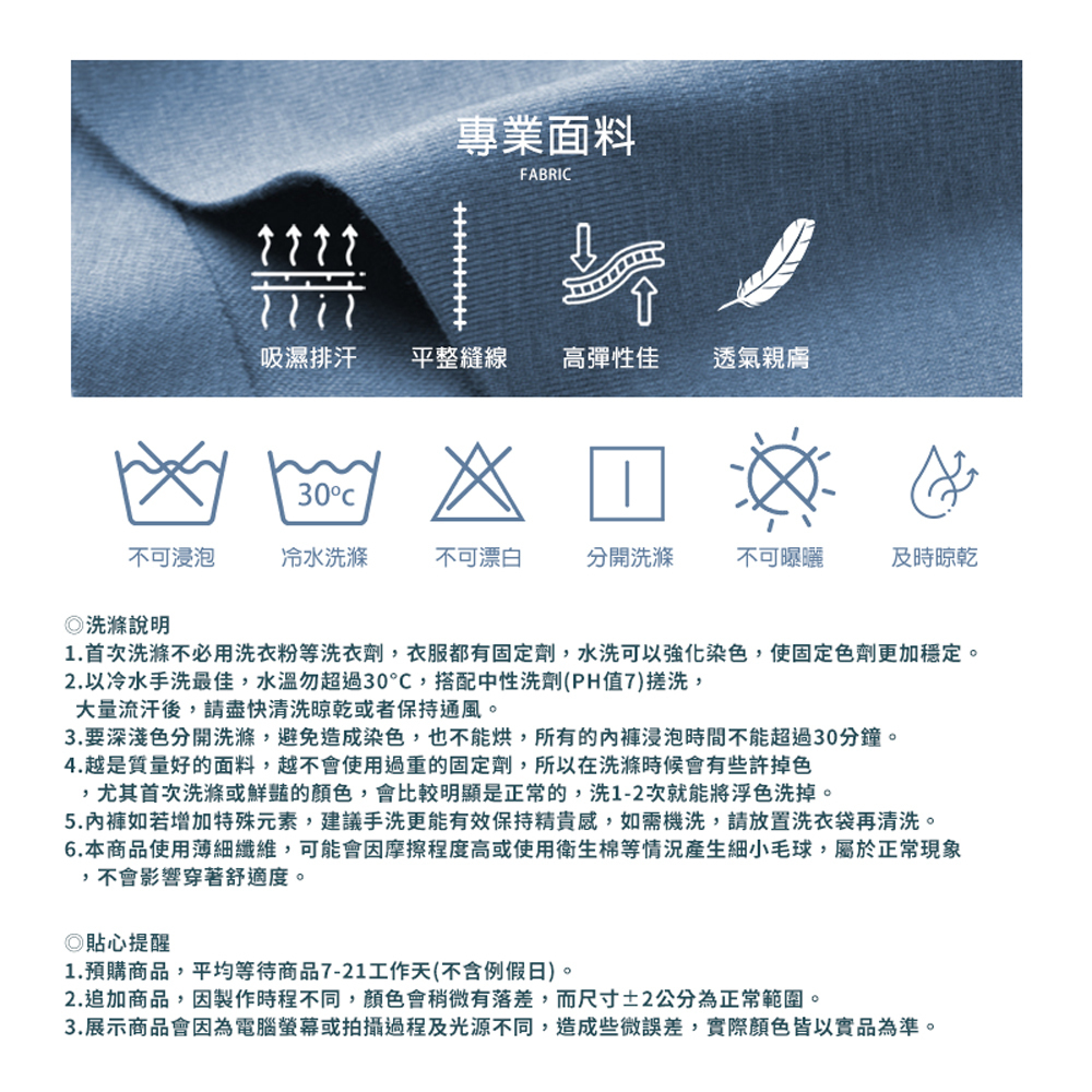 褲底:95% 棉 5% 彈性纖維抗菌成份