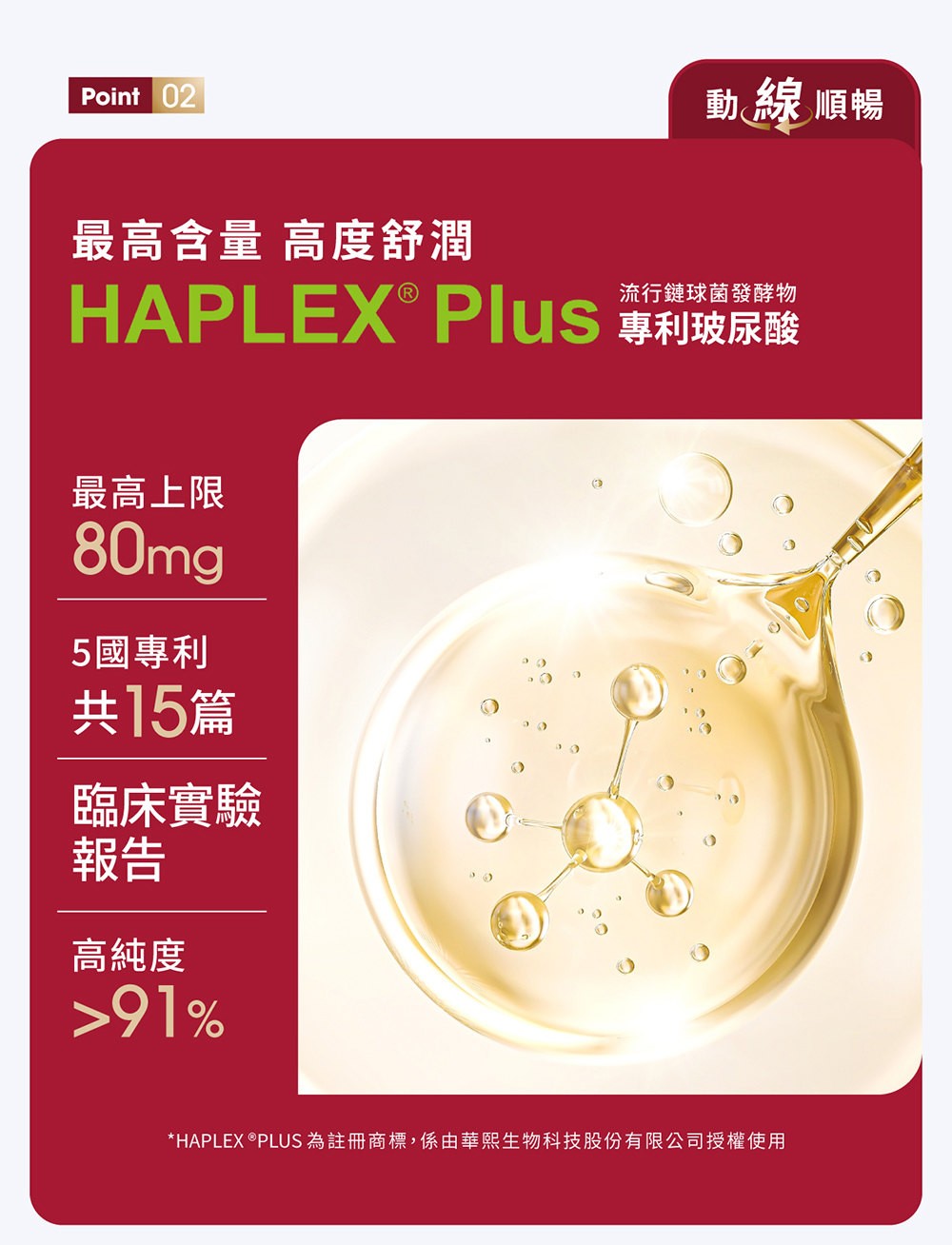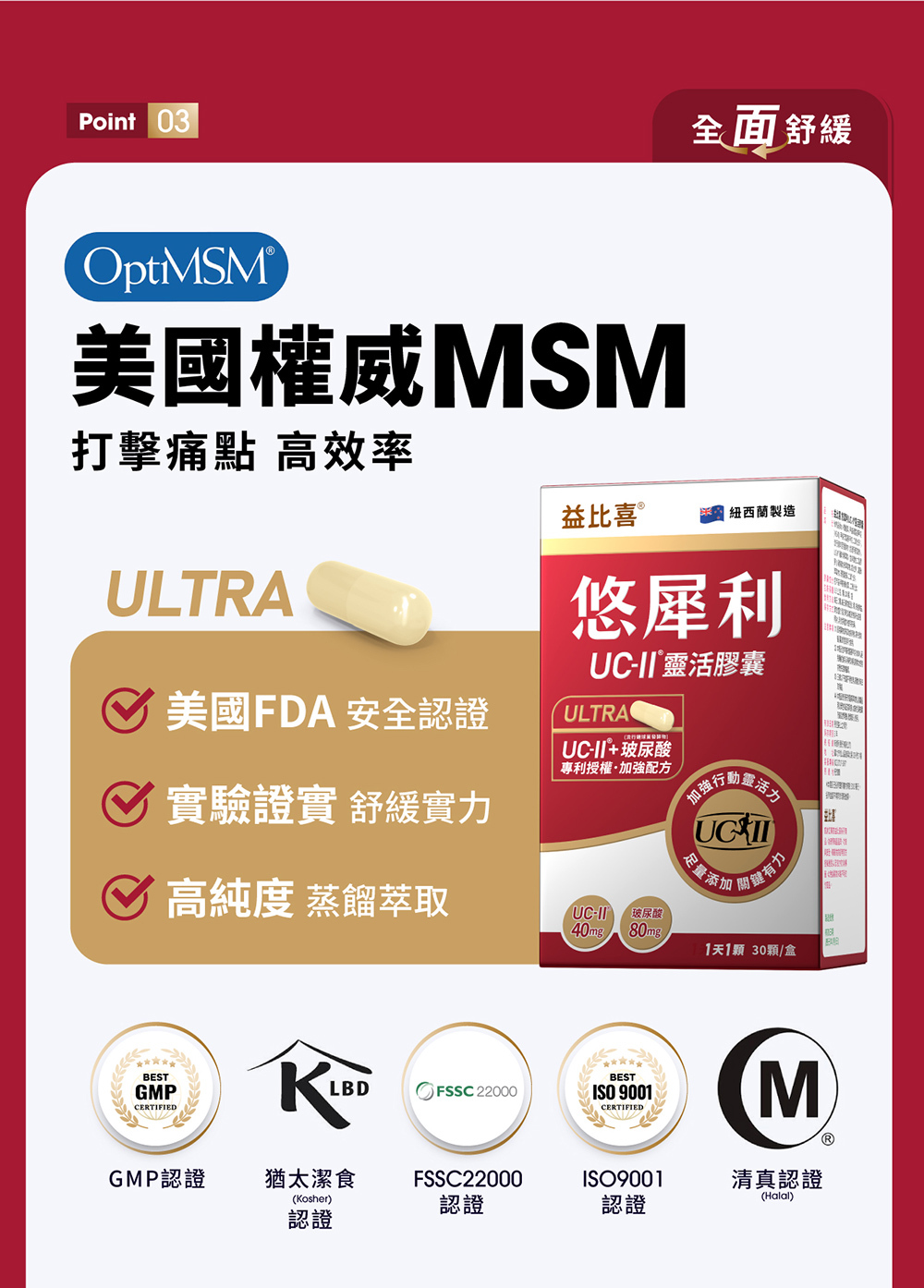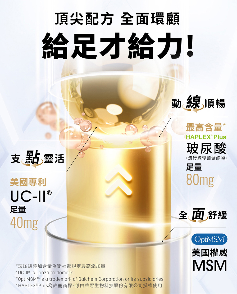使用40mg足量專利UCII + 80mg最高劑量專利玻尿酸,更靈活順暢🏃♂️