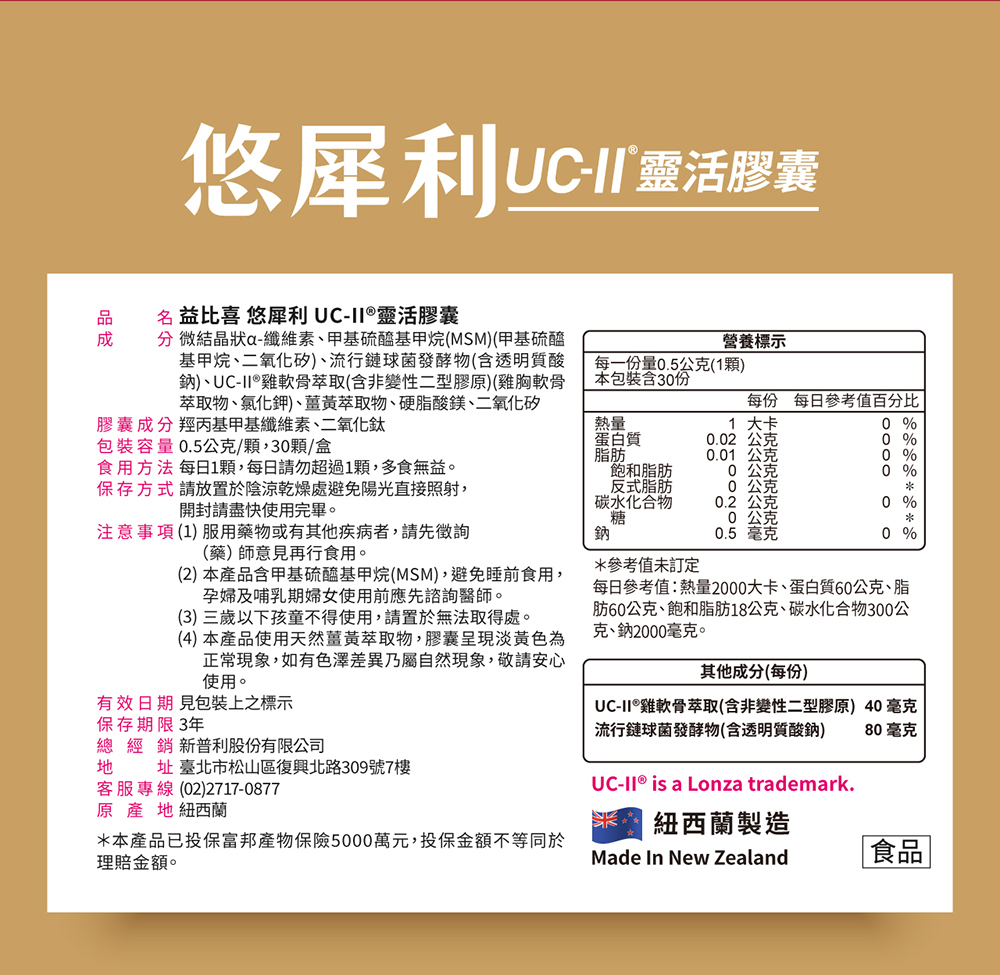 產品連結:益比喜 悠犀利UC-II®靈活膠囊