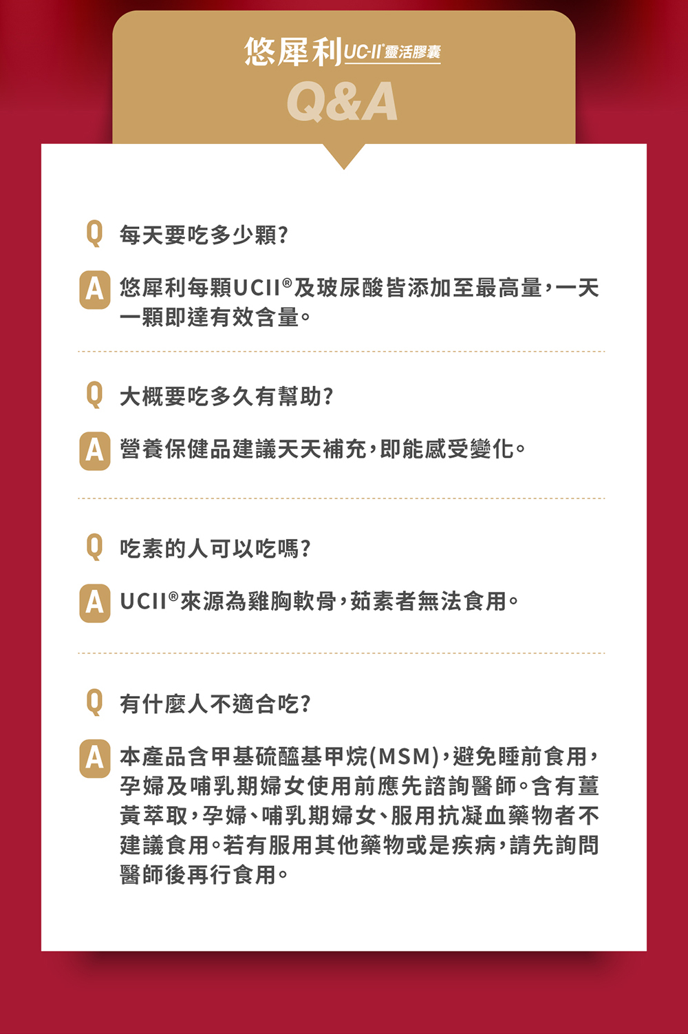 ● 試用產品:悠犀利UC-II®靈活膠囊(30入/盒),價值$2,980元